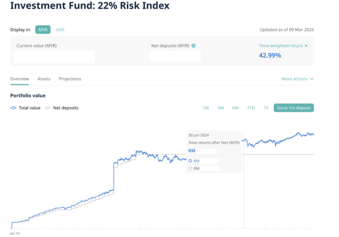 That means you’ll pay RM750 a year in platform fees. Throw their 0.35% foreign exchange fee into the mix, and that’s another RM350 when you invest…and another RM350 if you choose to withdraw all your funds.